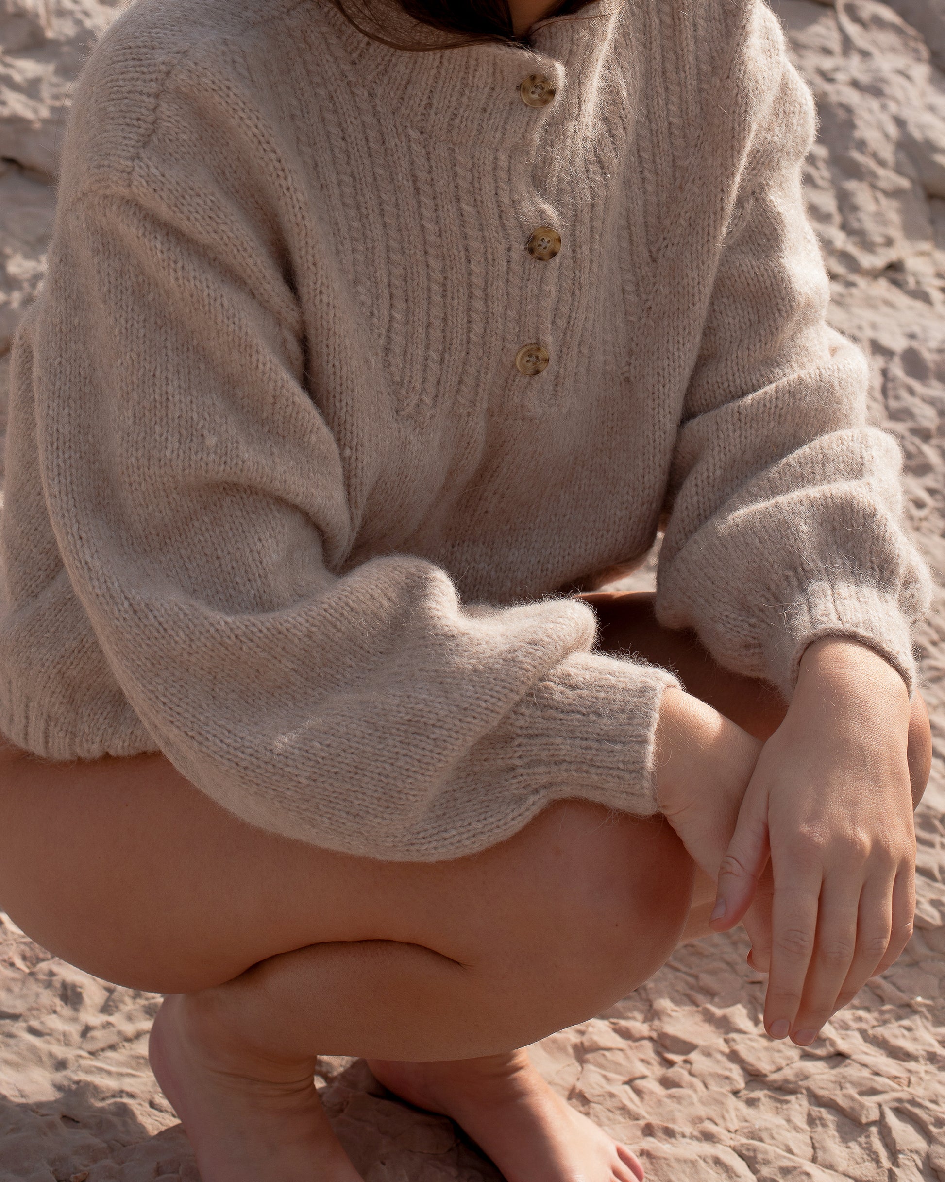 Le pull Falco est inspiré des gros pulls de marin, prêt à affronter vents et marées. Tricoté dans un mélange d'alpaga, il est aussi tout doux et tout chaud. Son plastron en côtes et torsades tricoté à la main est épais et vous tiendra chaud face à la tempête ☀︎ Il sera aussi idéal déboutonné pour les soirs d'été.